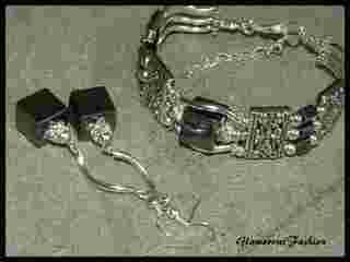 BRANSOLETA I KOLCZYKI WYKONANE Z ANTYALERGICZNYCH ELEMENTÓW POSREBRZANYCH ORAZ PIĘKNYCH KAMIENI CZARNEGO HEMATYTU DŁUGOŚĆ BRANSOLETY 19CM+ REGULACJA ,KOLCZYKI 4 CM , KAMIENIE HEMATYT 12MM I 4MM + CYRKONIOWE PRZEKŁADKI