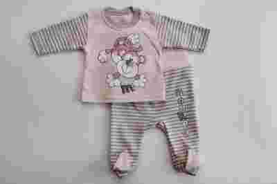 *Półśpiochy w różowo-szare paski, z niespieralnym obrazkiem na lewej nogawce.