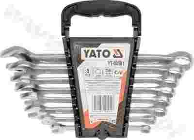 Komplet kluczy płasko-oczkowych marki Yato. Wykonane z wysokiej jakości stali chromowo-wanadowej CrV zgodnie z normą DIN3113. Satynowe wykończenie, minimalizujące poślizg klucza zanieczyszczonego olejem. Dwunastokątny kształt umożliwia odkręcenie 5 rodzajów śrub, pasuje do śrub Torx, Spline, sześciokątnych, calowych i kwadratowych.