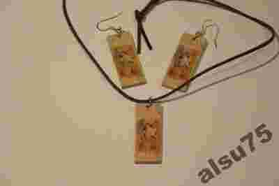 KOMPLET KOLCZYKI,WISIOR DECOUPAGE wysyłka gratis!