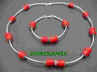 KOMPLET KOLIA BRANSOLETKA KORAL NASZYJNIK