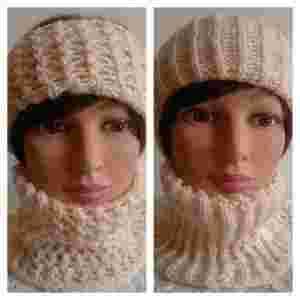 Szerokość opaski: około 9 cm Opaska jest w rozmiarze uniwersalnym i pasuje na obwód głowy: 44-62 cm Ocieplacz na szyję (komin) podobnie jak opaska wykonany pół wzorem angielskim a pół ażurowym. W zależności jaki chcemy wzór na wierzchu tak składamy komin. Doskonale otuli twoją szyję szczególnie w wersji podwójnego golfu.