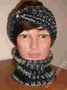 Dzisiaj oferuję własnoręcznie wykonany komplet: komin i opaska na głowe Całość wykonana z nowej akrylowej włóczki. Wełna bardzo miękka w dotyku i przyjazna dla skóry. Produkt nowy, raz tylko wypłukany w wodzie z płynem w celu ukształtowania oczek. Wymiary OPASKA: Szerokość opaski na płasko: około 9-10 cm Opaska jest w rozmiarze uniwersalnym i pasuje na obwód głowy: 44-62 cm Kolor: odcienie czarnego,szarości i bieli. Opaskę zdobią trzy przeźroczyste koraliki, kamyczki. Można ją nosić po dowolnej stronie głowy, ponieważ opaska nie posiada szwu. KOMIN: Wysokość około 28 cm Obwód komina na płasko: 44 cm i rozciąga się do 66 cm Kolor: odcienie czarnego,szarości i bieli Ocieplacz na szyję (komin) można nosić wg uznania, co prezentuję na poniższych zdjęciach. Doskonale otuli twoją szyję szczególnie w wersji podwójnego golfu. Komplet został wykonany bardzo estetycznie. Zadbałam o jego każdy drobny szczegół !!! TYLKO JEDEN EGZEMPLARZ !!!