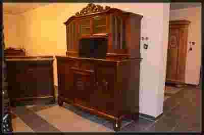 Zogromną przyjemnością prezentuję Państwu unikatowy pełen uroku i klasy komplet antyczny. Mebele zostały wykonane z drewna dębowego, fornirowane dębiną. Komplet wykonany jest w niezwykle oryginalnej stylistyce przyozdobiony pięknymi ornamentami oraz frezami szyb, które w blasku przygasających świateł wprowadzają do pomieszczenia swoistą grę cieni. Mebel jest niezwykle stylowy przez co swoje piękno prezentuje w sposób elegancki stając się niebywałą perłą meblarską każdego pomieszczenia, które zaszczyci swoją obecnością. Pięknie wystylizowana bryła, którą zdobią precyzyjnie wykonane rzeźbienia to istny majstersztyk sztuki meblarskiej. Komplet swoją prezencją zwróci uwagę nie tylko znawców antycznej sztuki meblarskiej ale każdego kto będzie miał okazję choć przez chwilę na niego spojrzeć .Każde rzeźbienie, które zdobią te dumne meble tworzą niebywałe mini dzieło sztuki – skrupulatnie wpasowane w całość dopełniają dzieła, składając się na całość tego wspaniałego majstersztyku sztuki meblarskiej. Komplet jest niesamowicie wykwintny, bez wątpliwości można określić go jako perłę wśród przedwojennych mebli. Dla kolekcjonera czy też amatora antyków może stać się wyrafinowaną zdobyczą. Te przepiękne meble posiadają jednocześnie zalety dekoracyjne i konstrukcyjne wraz z użytecznością, łącząc w sobie w sposób harmonijny funkcję i formę. Stylistyka tych niezwykłych mebli uzmysławia bogactwo dokonań naszych przodków w rozwoju sztuki meblarskiej. Korzystanie z nich na co dzień jest miarą naszego w niej uczestnictwa, co doskonale odzwierciedla sentencja Hipokratesa "Ars longa, vita brevis" - sztuka trwa długo, życie krótko.