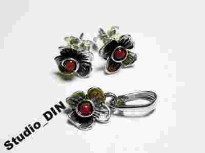 komplet KWIATEK wisiorek kolczyki koral STUDIO DIN