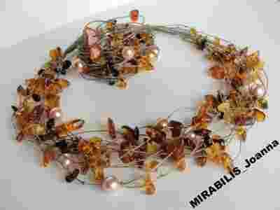 Bransoletka Len Bursztyny bałtyckie miodowe ,mleczne _SREBRO