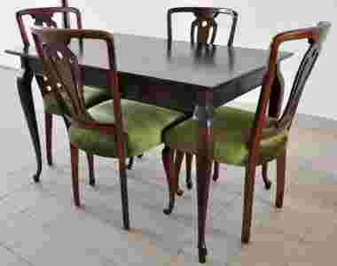KOMPLET LUDWIKOWSKI STÓŁ ORZECHOWY 4 KRZESŁA WELUR