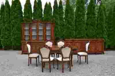 komplet jest wykonany z litego drewna ręcznie rzeźbionego;