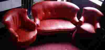 Witam na mojej aukcji do sprzedani mam KOMPLET MEBLI MIĘDZYWOJENNYCH Oryginalny komplet wypoczynkowy z okresu międzywojennego. Obicie skóra ekologiczna, w kolorze czerwonym. Boki kanapy i foteli dodatkowo ozdabiają ćwieki co dodaje uroku. Nogi wykonane z drewna, przednie z metalu delikatnie rzeźbione. WYMIARY KANAPY: Wysokość – 89cm, Szerokość – 86cm, Długość – 144cm, Głębokość: 54/110 cm WYMIARY FOTELA: Wysokość - 89cm, Szerokość - 75cm, Długość – 66cm, Głębokość: 47/38 cm.