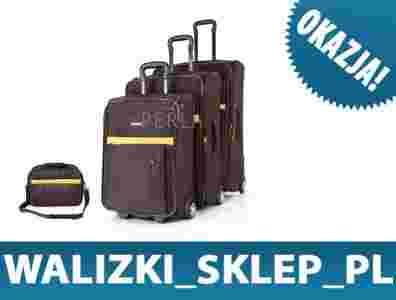Komplet 3 miękkich walizek (2 kółka) + torba pokładowa