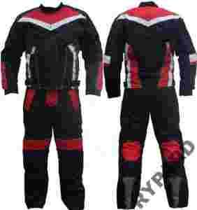 Spodnie wyposażone są w ochraniacze na kolanach i biodrach, a kurtka posiada protektory na łokciach, barkach i plecach.