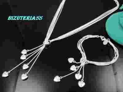 Komplet Naszyjnik+ Bransoletka 5 serc ,serduszka