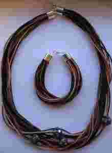 Komplet, naszyjnik i bransoletka, rzemień