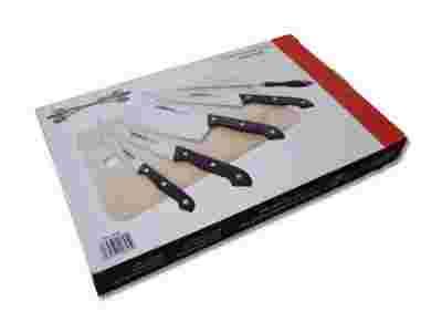 KOMPLET NOŻY KUCHENNYCH Z DREWNIANĄ DESKĄ