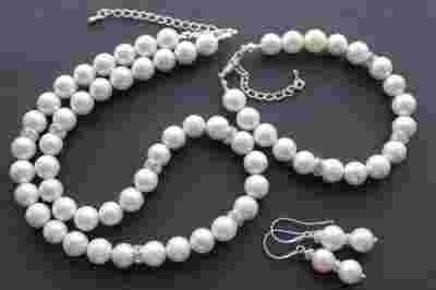 KOMPLET PERŁY MAJORKA~CYRKONIE ŚLUB WESELE