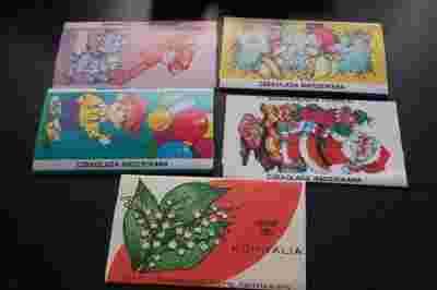 Komplet pięciu opakowań po czekoladach
