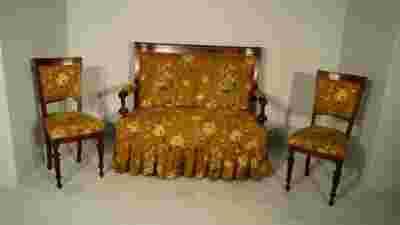 Komplet sofa i dwa krzesła Biedermeier w kwiaty