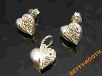 KOMPLET SREBRNY 925-TRZYSERCA OZDOBIONE CYRKONIAMI