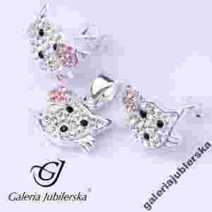 KOMPLET SREBRNY HELLO KITTY SWAROVSKI PREZENT