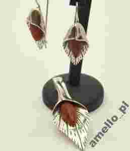 KOMPLET SREBRNY KOLCZYKI ZAWIESZKA WISIOREK KORAL