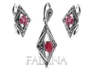 Komplet Srebrny Rubin Markazyt -fz456-