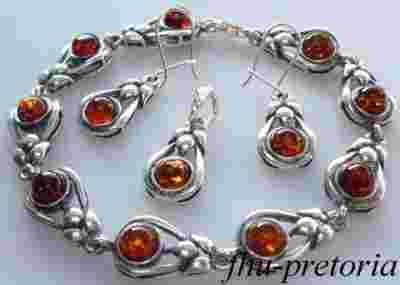 komplet srebrny srebro bursztyn koniak groszek