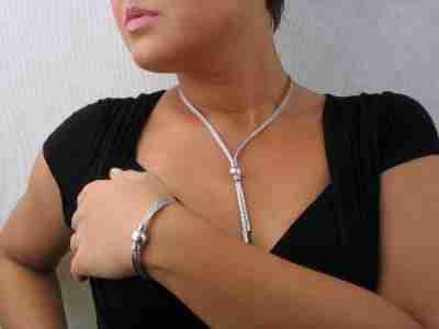 naszyjnik krawatka oraz bransoletka ozobione dużymi kulami srebrnymi