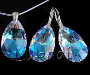 Komplet Srebrny z MIGDAŁ Swarovski Blue AB 28mm