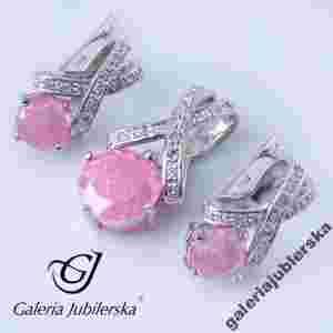 KOMPLET SREBRNY Z RÓŻOWYMI KAMIENIAMI WYSYŁKA 24H