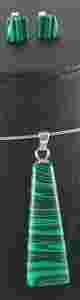 KOMPLET BIŻUTERII WYKONANEJ Z NATURALNEGO KAMIENIA O NAZWIE MALACHIT W POŁĄCZENIU ZE SREBREM PRÓBY 925.