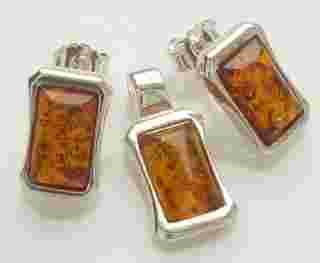 komplet srebro bursztyn koniak kostka sztyft