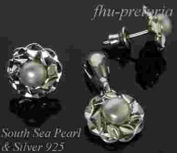komplet srebro kolczyki i wisiorek perły coco