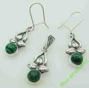 komplet srebro malachit koniczyna kolczyki wisior