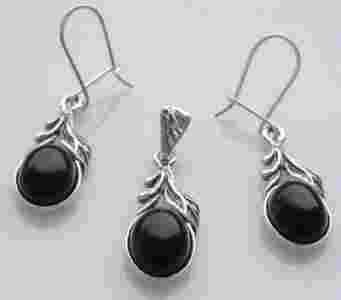 komplet srebro onyks listki kolczyki wisiorek