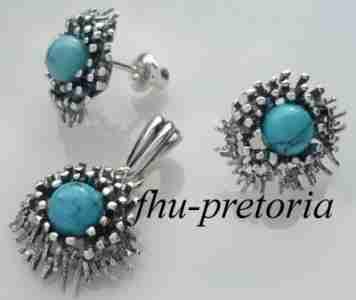 komplet srebro turkus chrust kolczyki i wisiorek