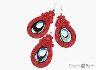 Biżuteria wykonana jest metodą tzw. sutasz klejony. Koraliki są przyszywane. Jest to sutasz dwustronny, tzn. tył nie jest podklejany filcem.