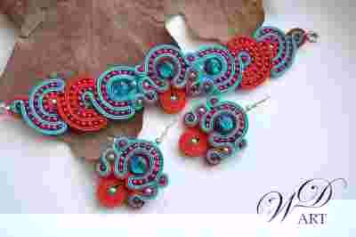 KOMPLET SUTASZ TURKUSOWO CZERWONY