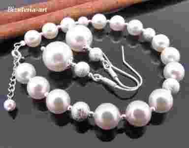 KOMPLET SWAROVSKI BIAŁE PERŁY DIAMENTOWE KULE