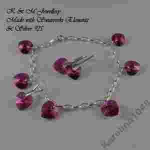 KOMPLET SWAROVSKI HEART FUCHSIA AB srebro