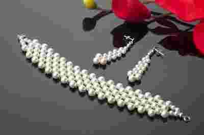 komplet SWAROVSKI perły biel krem granat SREBRO