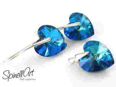 Komplet Swarovski Serce Granatowe Niebieskie 14mm