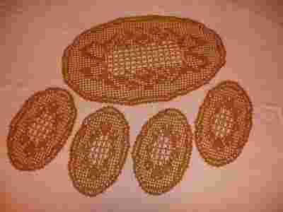 Komplet szydełkowych serwetek owalnych