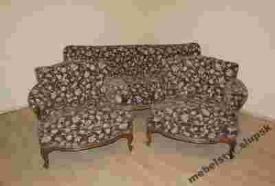 Stelaż w kanapie i fotelach zdobiony rzeźbieniami.