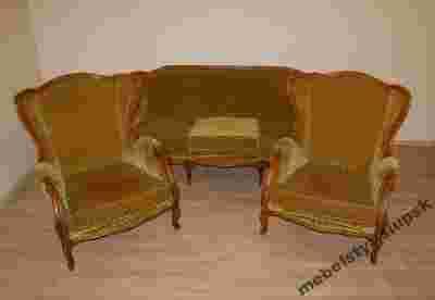 Stelaż w kanapie i fotelach zdobiony rzeźbieniami.