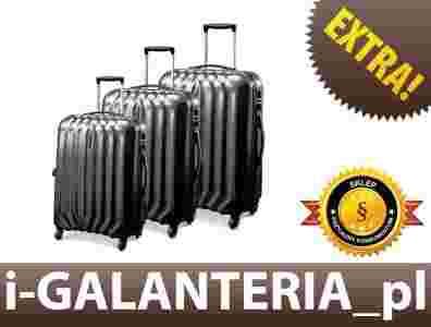 lekkich twardych walizek, które oferowane są w 3 rozmiarach: duża, średnia i mała oraz w 4 kolorach: zielonym, fioletowym, srebrnym i czarnym.