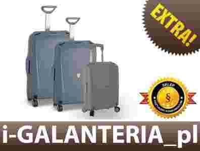 Komplet trzech walizek: duża, średnia i mała (kabinówka) firmy RONCATO z kolekcji LIGHT. Każda walizka wykonana jest z bardzo lekkiego, trwałego i wytrzymałego