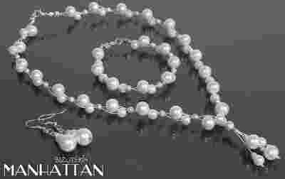 komplet wieczorowy PERŁY BIAŁE ~ DIAMENCIKI ~3w1~