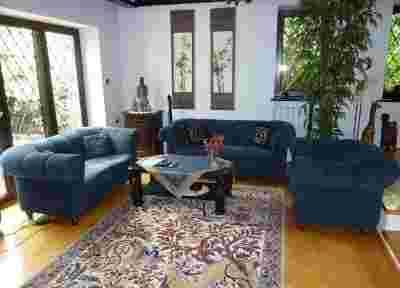 Komplet jest używany, jego stan osobiście oceniam jako dobry+ - nosi standardowe oznaki użytkowania, lecz żadnych poważnych. Jedyną wadą jaką jestem w stanie na nim zauważyć jest lekko zapadnięte lewe ramię fotela (wada czysto kosmetyczna) - w galerii zdjęć mebli (LINK poniżej) jest stosowna fotografia z adnotacją obrazująca ten mankament.
