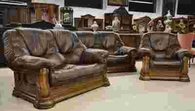 KOMPLET WYPOCZYNKOWY 3-2-1 SKÓRA DĄB