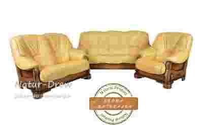 Delfa komplety wypoczynkowe ze skóry naturalnej na rzeźbionym stelażu dębowym